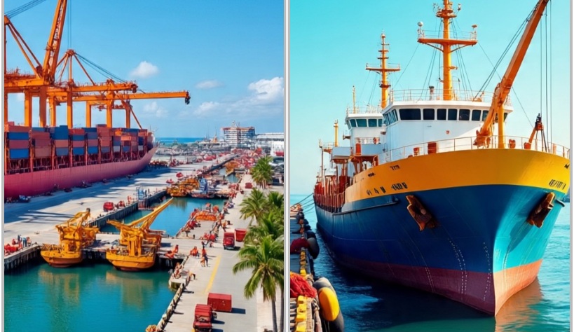 Dengan pembangunan pelabuhan baru di Sumsel maka prosfek ekonomi Indonesia ke depan bergerak dan terangkat. Foto: kolase/meta ai--