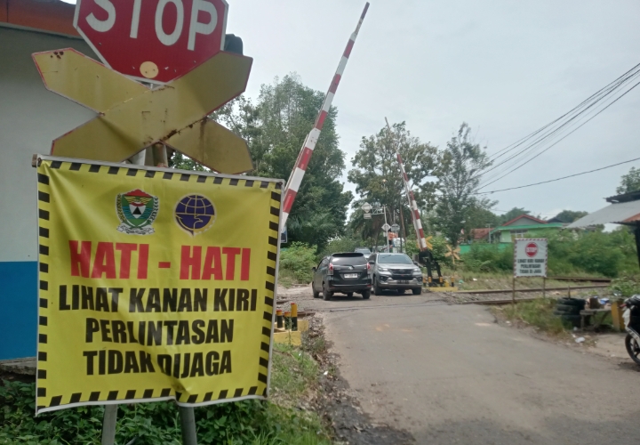 Lebih dari sepekan tidak ada petugas penjagaan, hanya terlihat papan peringatan bertuliskan "Stop Lihat Kiri Kanan Perlintasan Tidak Dijaga".