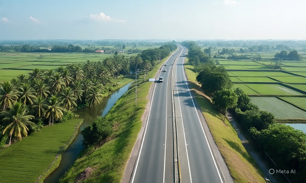 Inilah Tol Raksasa Baru di Sumsel Segera Operasional. Panjang sebenarnya tol ini bukan 70 Km tapi 111 Km. Foto: meta ai--